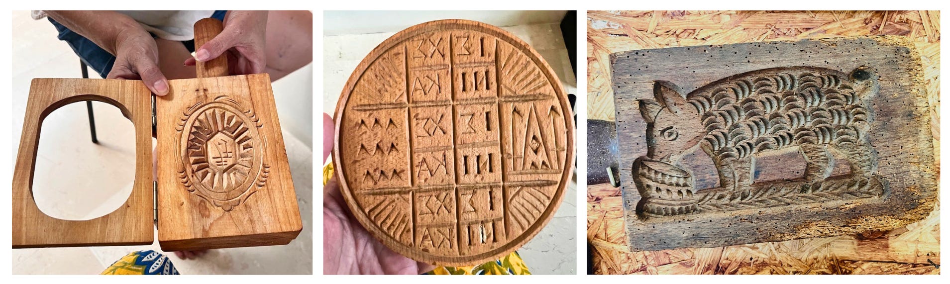 Jasmine’s home felt like a bright, cozy, sun-filled museum. Everywhere you looked, there were molds—hundreds of them—wooden, brass, hinged, double-sided, some opening like books, some huge, and some tiny. Each one had a story. Not just where it came from and how it was used, but how she found it, who gave it to her, and what it meant. She’s been collecting them for over 20 years.